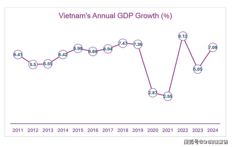 虽然面对各类挑和,越南经济正在2024年仍然表示出显著的韧性和增加潜力,P实现了7。09%的正增加。虽然外部复杂且遭到台风摩羯的影响,越南经济的强劲反弹彰显了其苏醒和顺应能力。跟着人均P的稳步提拔和商业动态的强劲表示,越南正在东盟地域脱颖而出。进入2025年,正在全球专家和机构的乐不雅预测支撑下,越南的经济前景一片。按照越南统计总局(GSO)的数据,虽然面对外部波动和不确定性,2024年越南的P仍实现了7。09%的增加。虽然这一增速略低于2018年、2019年和2022年的峰值,但仍然显示出强劲的经济反弹,使越南成为该地域的亮点。