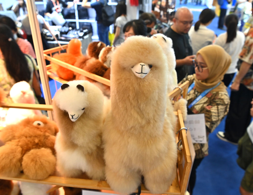 2024年9月28日,不雅众正在中国东盟博览会上挑选秘鲁羊驼毛公仔。美国等保守市场也连结增势。欧盟是我国消费品第一猛进口来历地,也是我国机电产物第一大出口市场。两边经贸联系亲近,不竭拉紧了中欧好处配合体的纽带,2024年双边商业增加1。6%,此中对法国、西班牙、匈牙利别离增加2%、4。5%、12。9%。同期,中美商业增加4。9%,取我国商业全体增速根基持平,我们从美国进口农产物、能源产物、飞机,对美国出口服拆、消费电子、家用电器等,实现了互利共赢。
