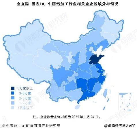 我国铝加工行业次要集中正在沿海地域以及部地带。沿海地域经济发财,金属加工手艺先辈,海外商业机遇更多,有益于铝加工行业快速成长,此中企业数量接近8万家,为全国第一;部地域铝矿资本较为丰硕,企业数量较多,代表省份包罗湖南、湖北等。