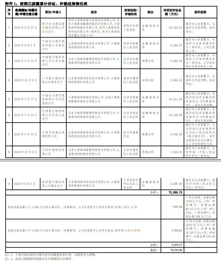 来历:大唐高鸿收集股份无限公司关于累计诉讼、仲裁环境的进展通知布告(通知布告编号:2025-009)。