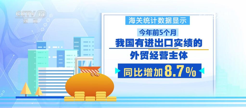 海关统计数据显示,我国有进出话柄绩的外贸运营从体同比添加8。7%。此中,平易近营企业数量添加10。1%,进出口值增加11。5%,占我国外贸比沉较客岁同期提拔2。6个百分点至54。7%。